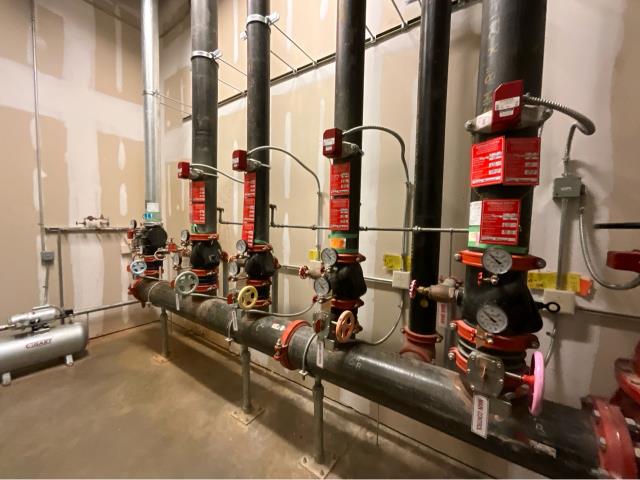 We recently performed a 3-year air leak test in compliance with NFPA 25 requirements on a dry fire protection system at a multi-unit apartment complex. This routine inspection ensures the system maintains proper air pressure and is ready to activate in the event of a fire.