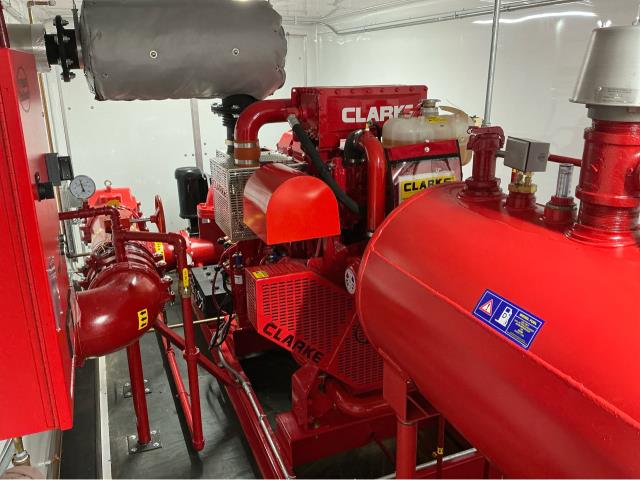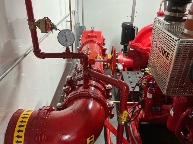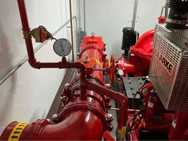 Our fire protection technician performed a weekly NFPA fire pump test on a diesel fire pump housed in a temporary fire pump trailer. The inspection confirmed proper engine startup, pump operation, and overall system performance to ensure the temporary fire pump remains ready for emergency use. Routine temporary fire pump trailer testing is critical during construction projects, fire pump outages, and system impairments to maintain continuous fire protection. Regular NFPA fire pump inspections and testing help ensure code compliance, reliable operation, and uninterrupted fire safety coverage.