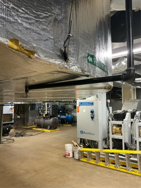 Finished replacing a section of corroded fire sprinkler line pipe. Removed damaged piping and installed new pipe to ensure system reliability and code compliance.