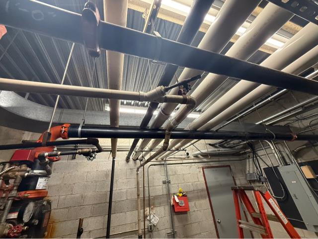 We successfully replaced 3” main piping and tied in the new section, while re-pitching the existing piping to prevent excessive residual water after draining. The system is now back online, fully operational, and free of leaks.